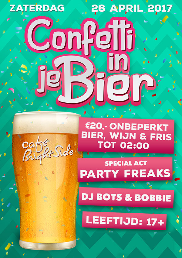Confetti in je bier Wat je moet weten We gaan bijna beginnen! Gefeliciteerd Femke Waijers namens Poar Neem’n mag jij gratis naar binnen met 5 andere vrienden! Doos Flugel word vanavond verloot tijdens de show! Datum: 26 April 2017 Deel dit evenement met je vrienden