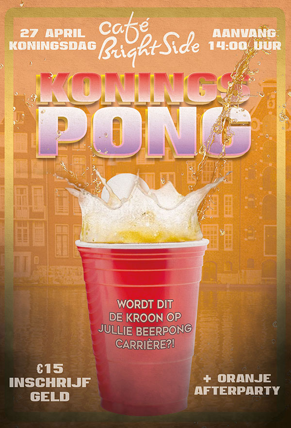 Konings pong Wat je moet weten Heb jij ook geen zin om in de drukte te staan tijdens Koningsdag? Maar denk je wel Koning(in) bierpo Datum: 27 April 2017 Deel dit evenement met je vrienden