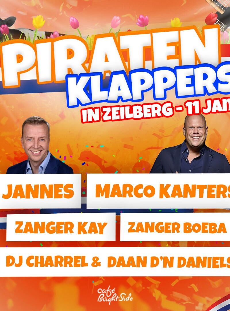 Piratenklappers in Zeilberg Wat je moet weten Datum: 11 January 2025 Tijd: 19:00 - 02:00 Deel dit evenement met je vrienden Koop hier je tickets