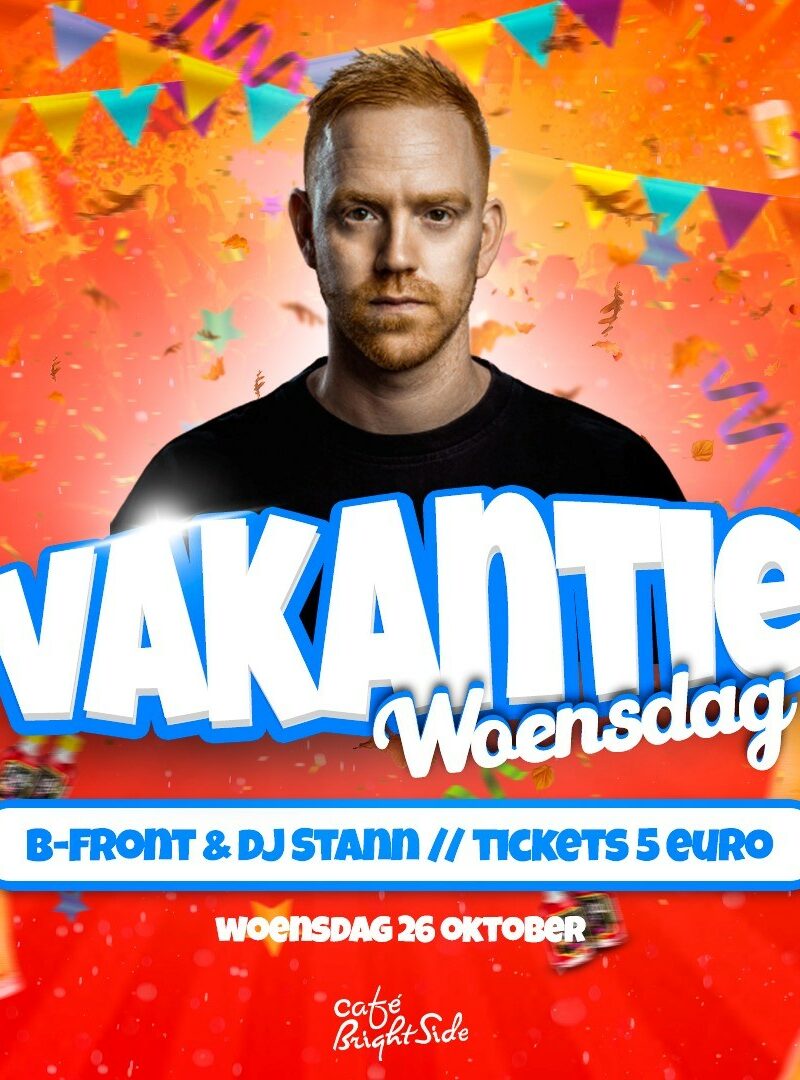 Vakantie Woensdag / B-Front Wat je moet weten Datum: 26 October 2022 Tijd: 20:00 - 02:00 Deel dit evenement met je vrienden