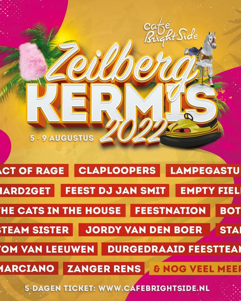 Zeilberg Kermis 2022 Wat je moet weten Klik hierboven voor 5 dagen maximaal feest! Datum: 5 August 2022 Tijd: 16:00 - 03:00 Deel dit evenement met je vrienden
